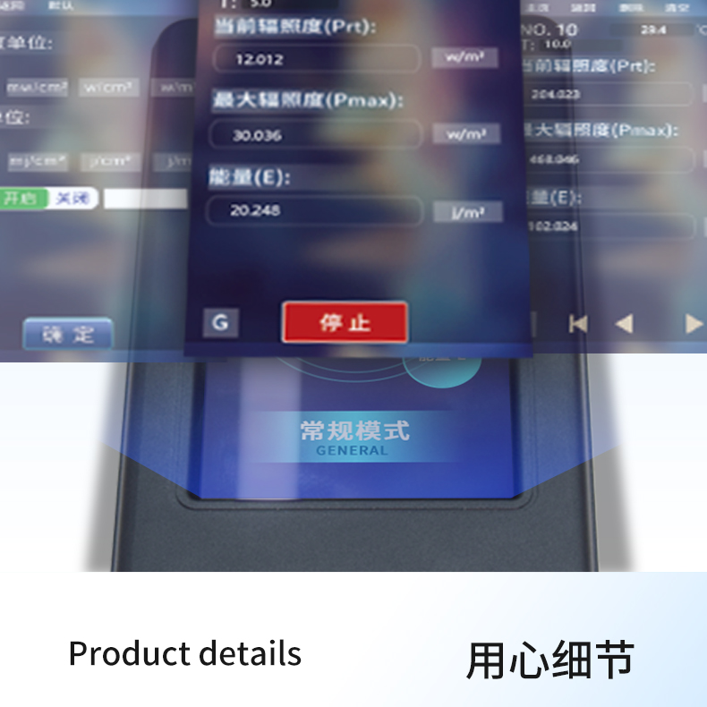 uw/cm²、mw/cm²、w/cm²、w/m²(可自动/手动切换) |