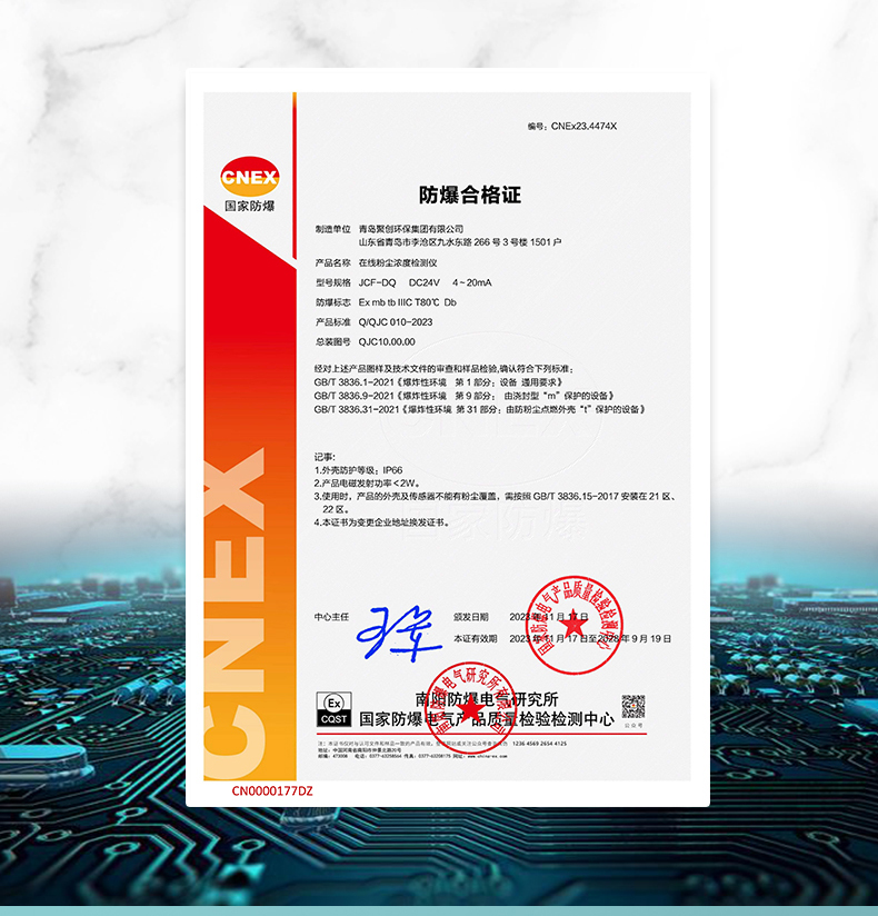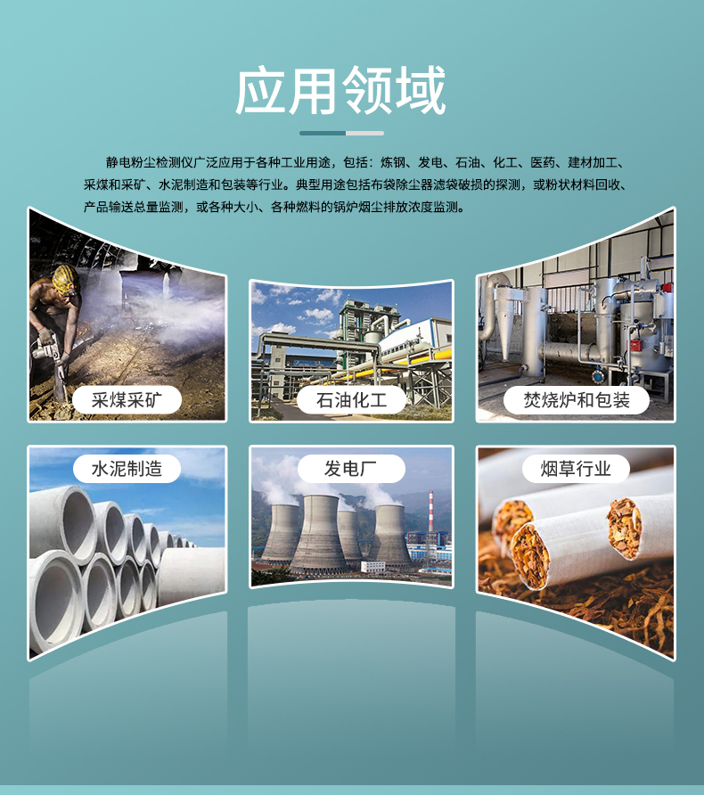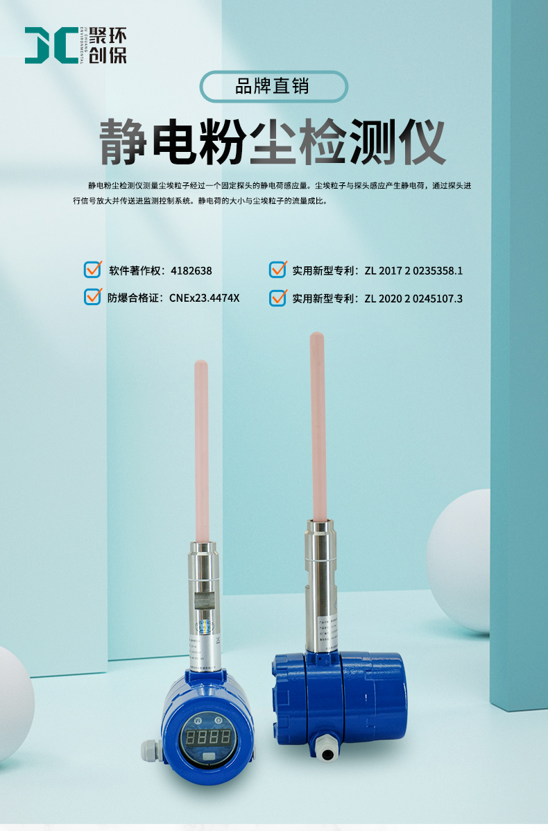 尘埃粒子与探头感应产生静电荷,通过探头进行信号放大并传送至监测控制系统。静电荷的大小与尘埃粒子的流量成比
