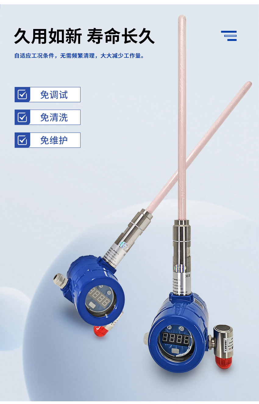 保护等级:IP66/NEMA4 铝合金壳体,适合非腐蚀性环境内安装,不锈钢探针 |