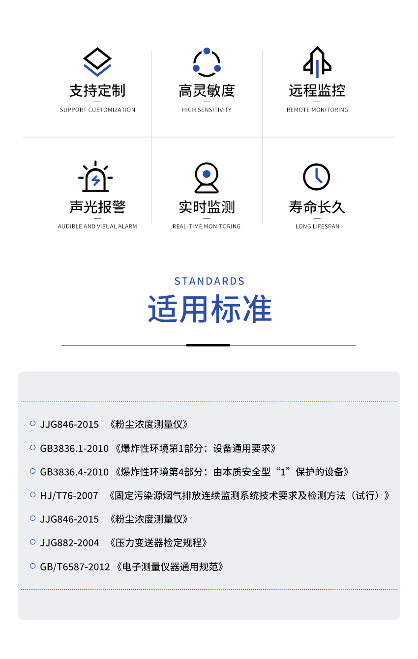 采用最先进的实用技术—专利改进型交流耦合技术,对粉尘的探测灵敏度高,线性度好。
