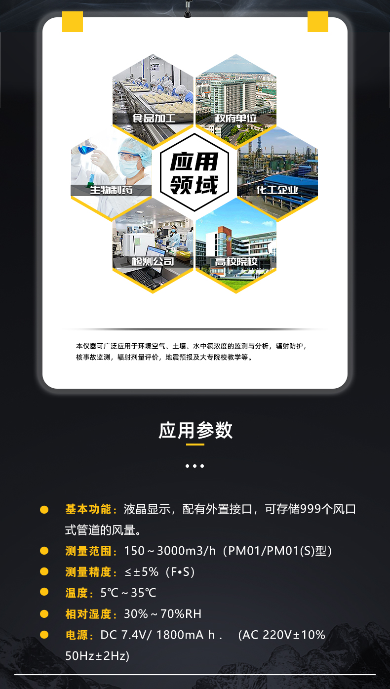 广泛应用于暖通空调、净化技术等行业进行风口和管道风量的直接测定