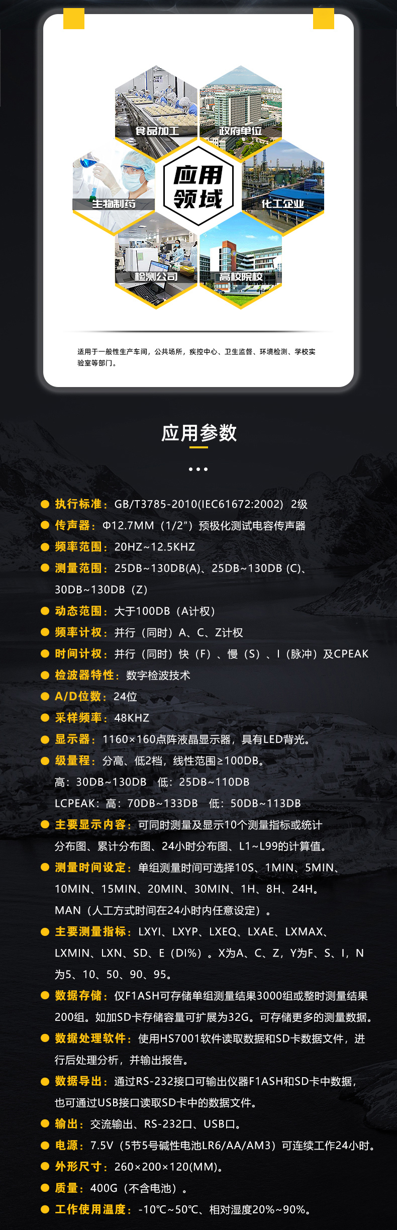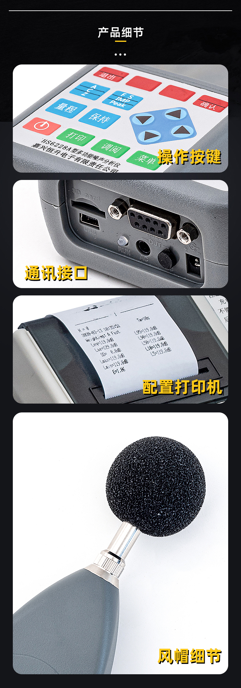 本仪器结构紧凑、造型美观、功能多、自动化程度高。可广泛用于环境保护、劳动卫生、工业企业、科研教学等领域,完成环境噪声测量、机场噪声测量、机器设备噪声测量以及建筑声