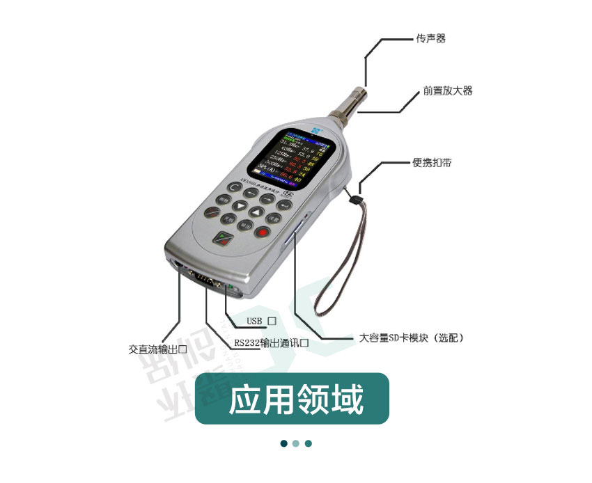该仪器可广泛应用在环境保护、劳动卫生、工业企业、科研教学等,完成环境噪声测量、声功率级测量、机器设备噪声测量以及建筑声学测量。