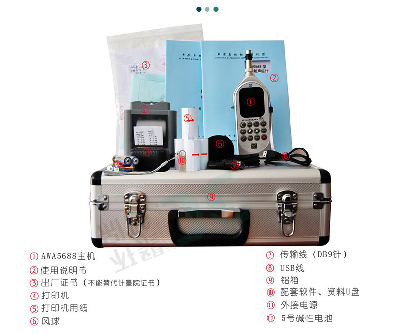 1.传声器组合:Φ12.7mm(1/2″)预化测试电容传声器+AWA14602 型前置级,