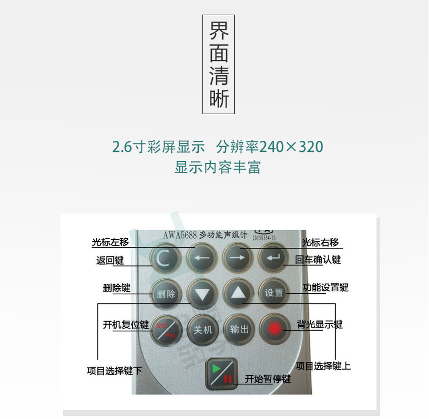 AWA5688型多功能声级计是采用数字信号处理技术的新一代噪声测量仪器,是AWA5680系列的升级产品,功耗更低,功能更强,彩屏液晶,界面友好,显示内容丰富。A、C、Z三种并行(同时)的频率计权及F、S、I三种并行(同时)的时间计权,可以同时测量多种评价指标,一档量程实现105dB级线性范围。分析功能多,统计、积分、1/1OCT、1/3OCT、FFT和数字记录可以同步或异步启动。独特的快速设置功能可帮用户“一键”设好相关标准要求的分析仪模式和参数,回到测量界面按下启动即可完成一次测量。低功耗、电池与外接电源自动切换功能的设计,可以实现超长时间的持续测量。32Mb的FLASH RAM可靠保存测量结果,也可选配大容量SD卡。