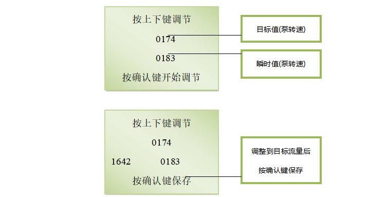 本仪器的标准流量为2L/min,当流量计显示的数值小于2L/min时,可长按↑键进行调整,当流量大于2L/min时,长按↓键进行调整,调整完成后按确认键保存后返回上级界面。