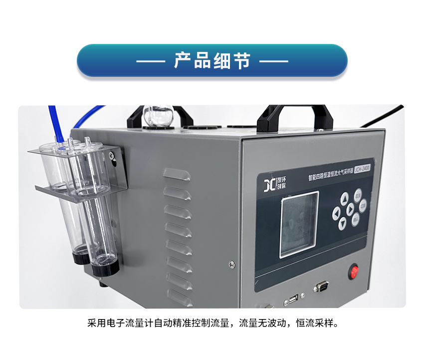 2、电子流量计自动精准控制流量,流量无波动,恒流采样;