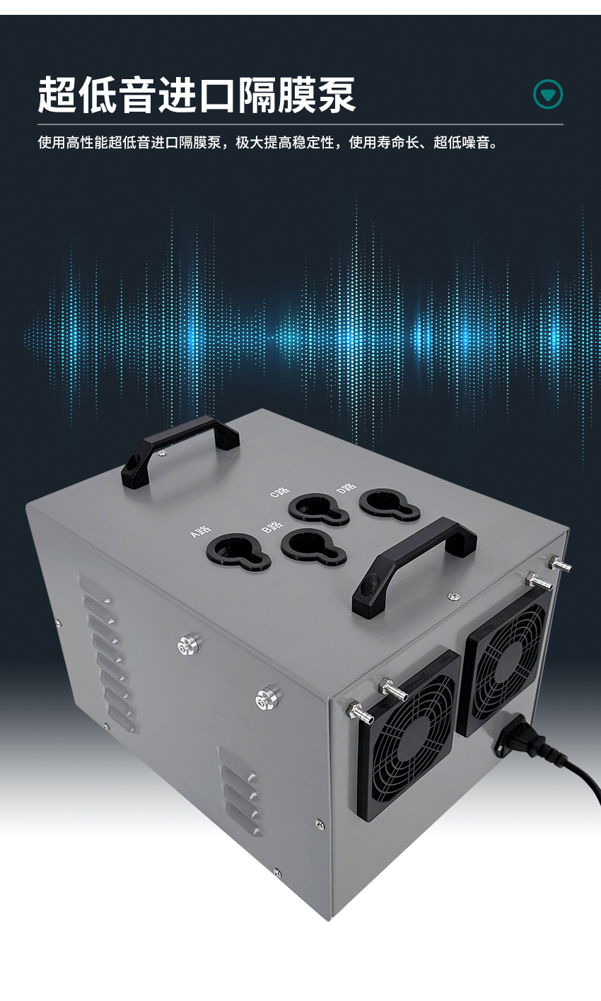 3、使用高性能超低音进口隔膜泵,极大提高稳定性,使用寿命长、超低噪音;