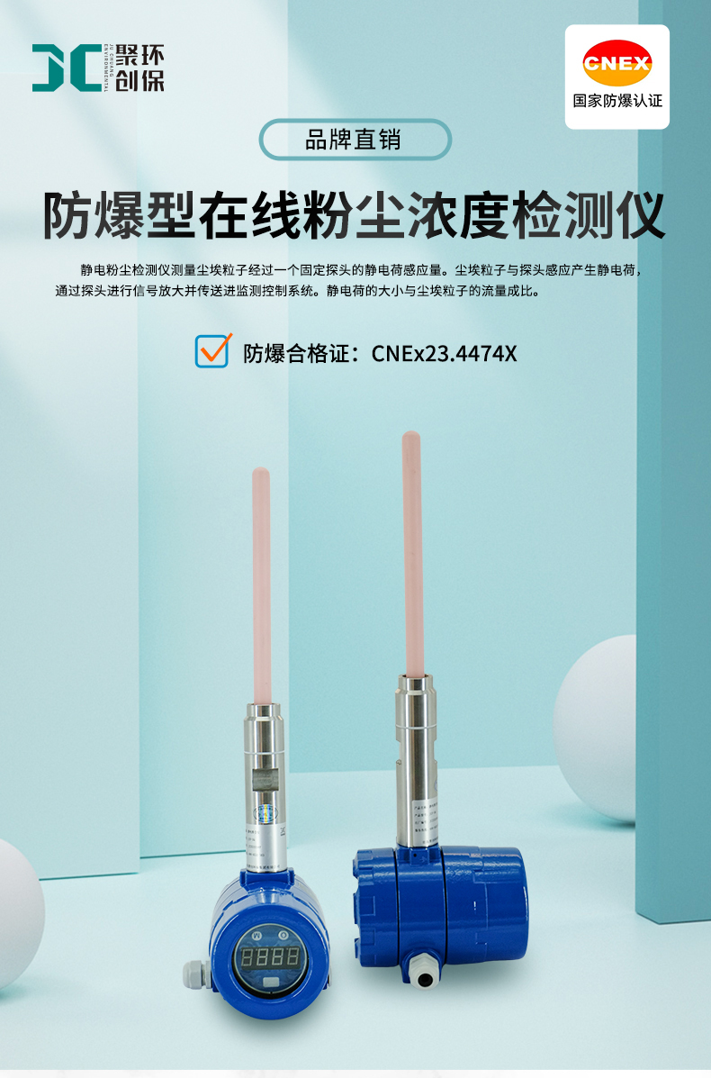 尘埃粒子与探头感应产生静电荷,通过探头进行信号放大并传送至监测控制系统。静电荷的大小与尘埃粒子的流量成比